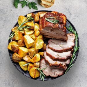 Snijd 1 aardappel in schijfjes van ongeveer 2 mm. Leg ze op een vel bakpapier en bak dit in de oven op 100 °C gedurende 45 minuten, tot ze goudbruin en krokant zijn. Bestrooi de aardappelen achteraf met wat zout en laat dit even rusten. Snijd de kerstomaten in schijfjes, leg ze op een bakpapier en kruid het geheel bij met peper en zout. Voeg daarna een scheutje olijfolie en wat tijm toe. Bak de tomaten gedurende 30 minuten in de oven op 100 °C.